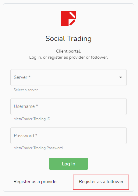 - server:Select a server (please note, CopyTrading currently supports MT4-Live1, MT4-Live3, MT4-Live4, MT4-Live5 and MT4-Live6 server accounts)