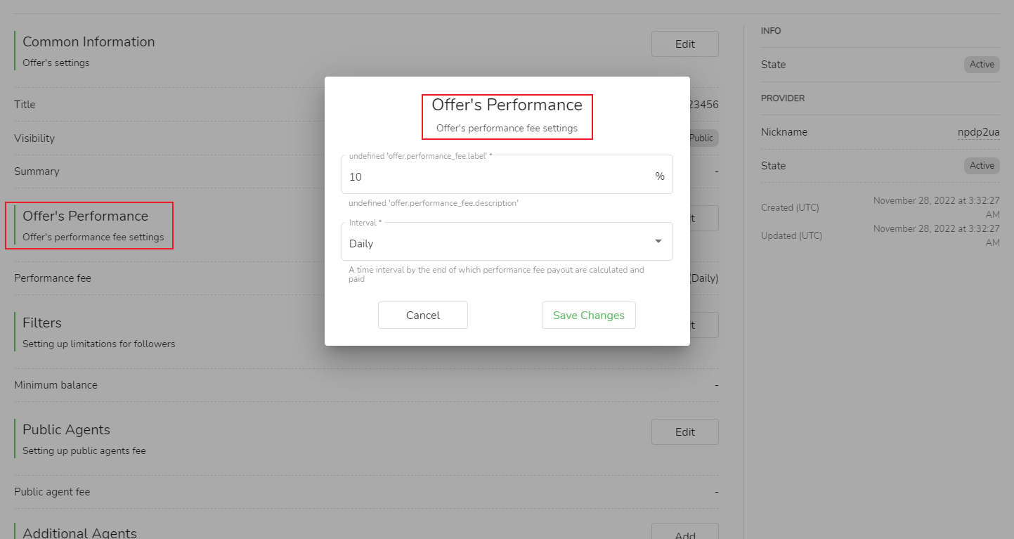 - Relación de la tarifa de rendimiento:Complete la proporción de participación en las ganancias (hasta 80) que se incluye en las condiciones de copia.