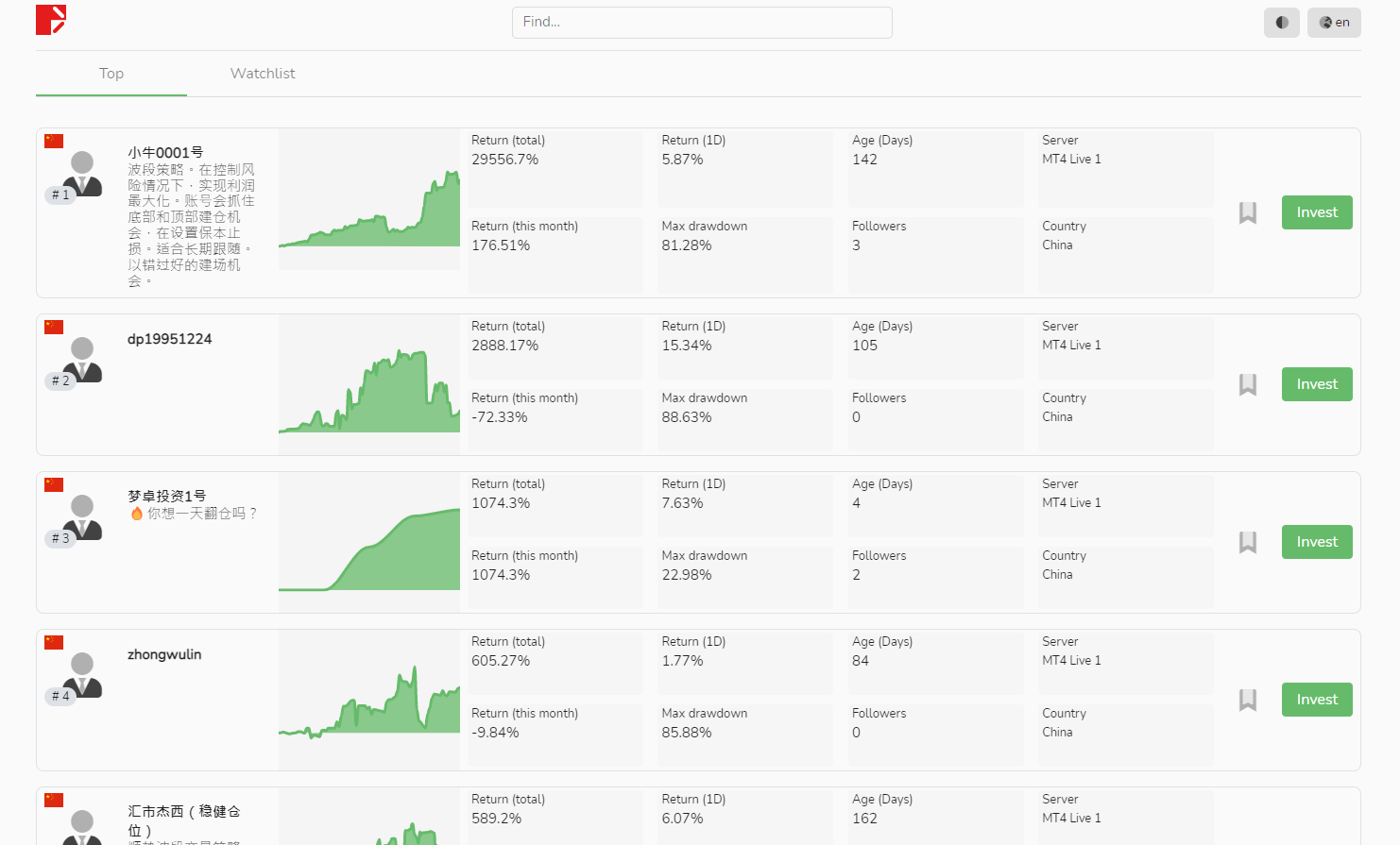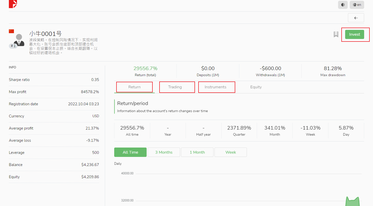 En el cuadrado de la fuente de la señal, los seguidores pueden ver las estadísticas detalladas del rendimiento comercial de cada fuente de la señal, como la tasa de retorno, la transacción rentable promedio, el mercado comercial promedio y las variedades de inversión, etc.