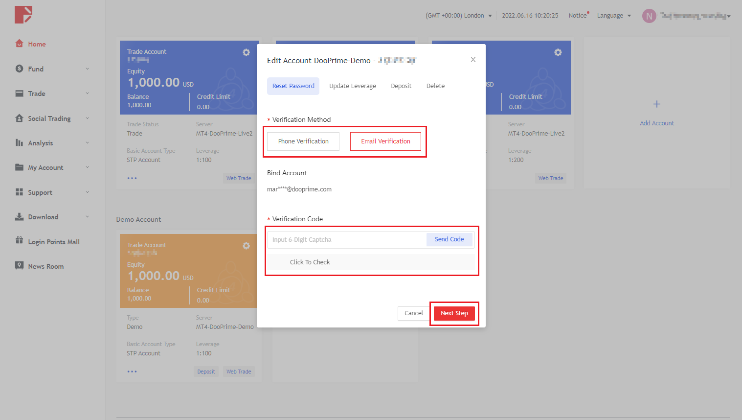 D Prime 사용자 센터에서 데모 계정 비밀번호를 잊어버린 경우 어떻게 해야 하나요?