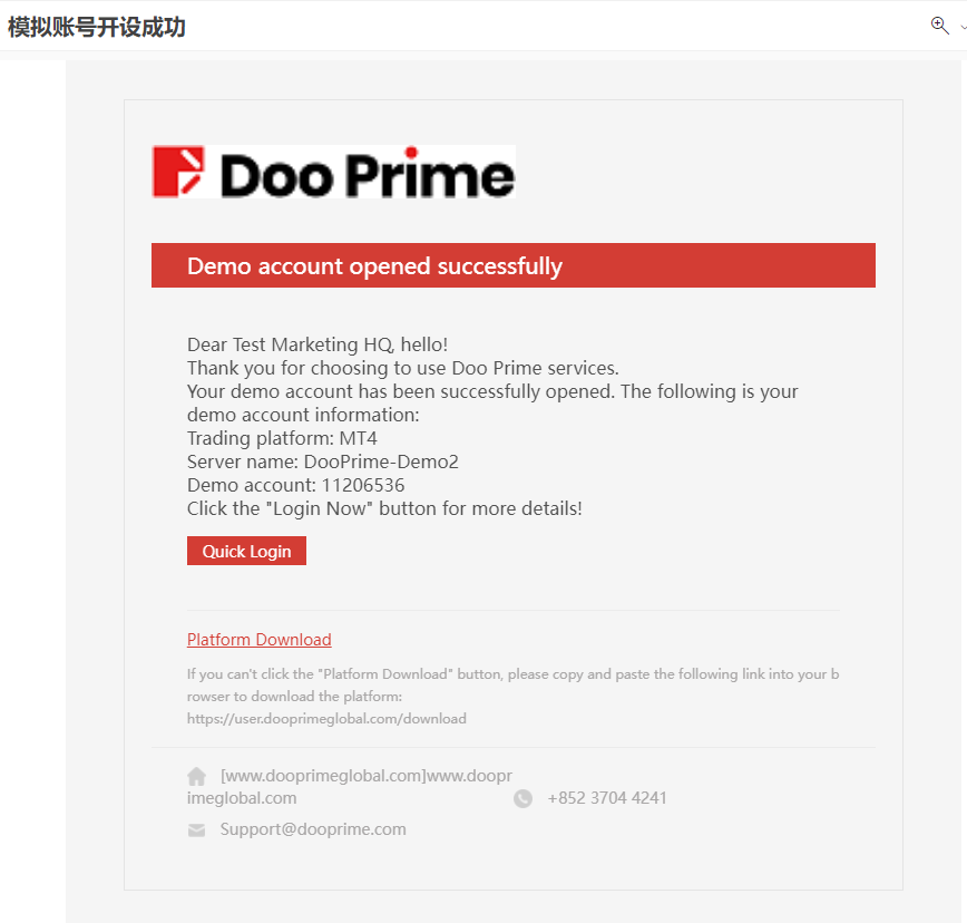 등록이 완료된 후 개인 등록 이메일에 로그인하여 "거래 플랫폼", "데모 계정" 및 "서버 이름"을 포함한 데모 계정의 로그인 정보를 받으십시오.