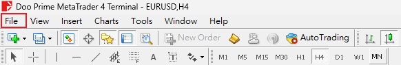 2. 상단 왼쪽 상단의 메인 메뉴 바에서 "파일"을 클릭하고 "새 데모 계정 열기"를 선택합니다.