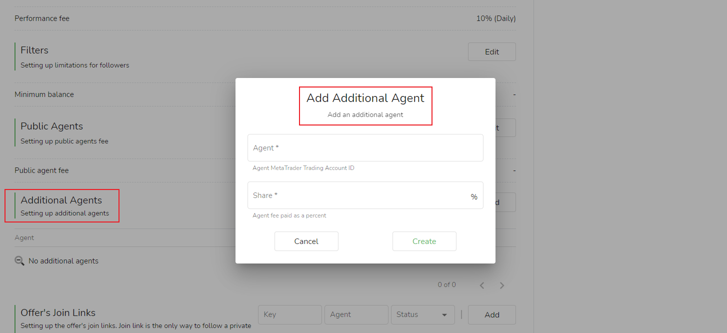 신호 소스 파트너:소개 및 홍보와 비교할 때 신호 소스 파트너는 신호 소스와 더 밀접한 관계가 있습니다. [추가]를 클릭하여 시그널 소스를 추가한 후 시그널 소스 파트너의 MetaTrader 거래 계정을 채우고 시그널 소스 파트너 수수료를 백분율로 설정한 다음 [만들기]를 클릭하여 시그널 소스 파트너를 추가할 수 있습니다.