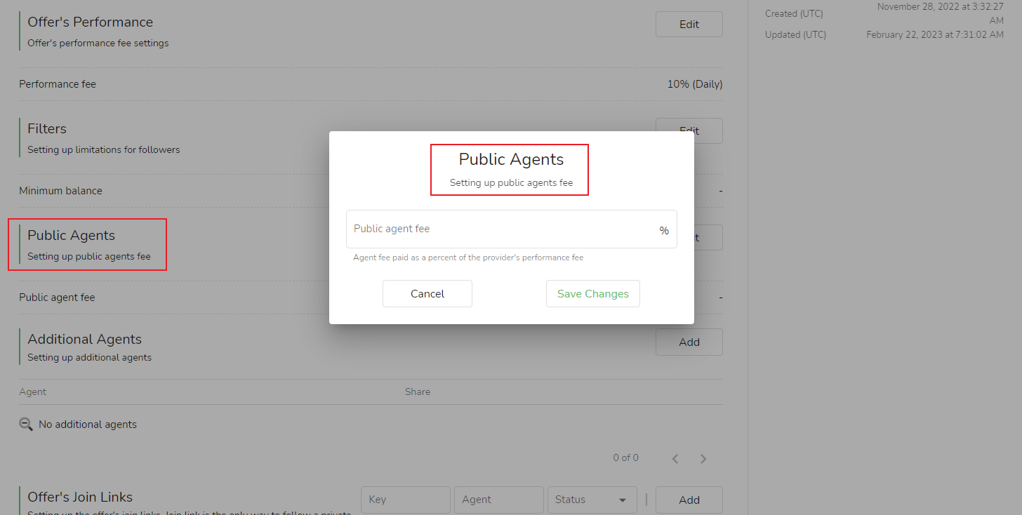 소개자는 신호 소스를 홍보하고 팔로워를 구독하도록 유도하는 일을 담당합니다. 시그널 소스는 성공적으로 팔로워를 구독하도록 유도한 프로모터에게 프로모션 비용을 지불해야 합니다. 입문 프로모션 비용은 구독 실적에 직접적으로 의존합니다. 시그널 소스는 카피 조건에 대한 레퍼럴 프로모션 수수료를 백분율로 설정할 수 있으며 일단 설정되면 모든 기획자에게 적용됩니다.