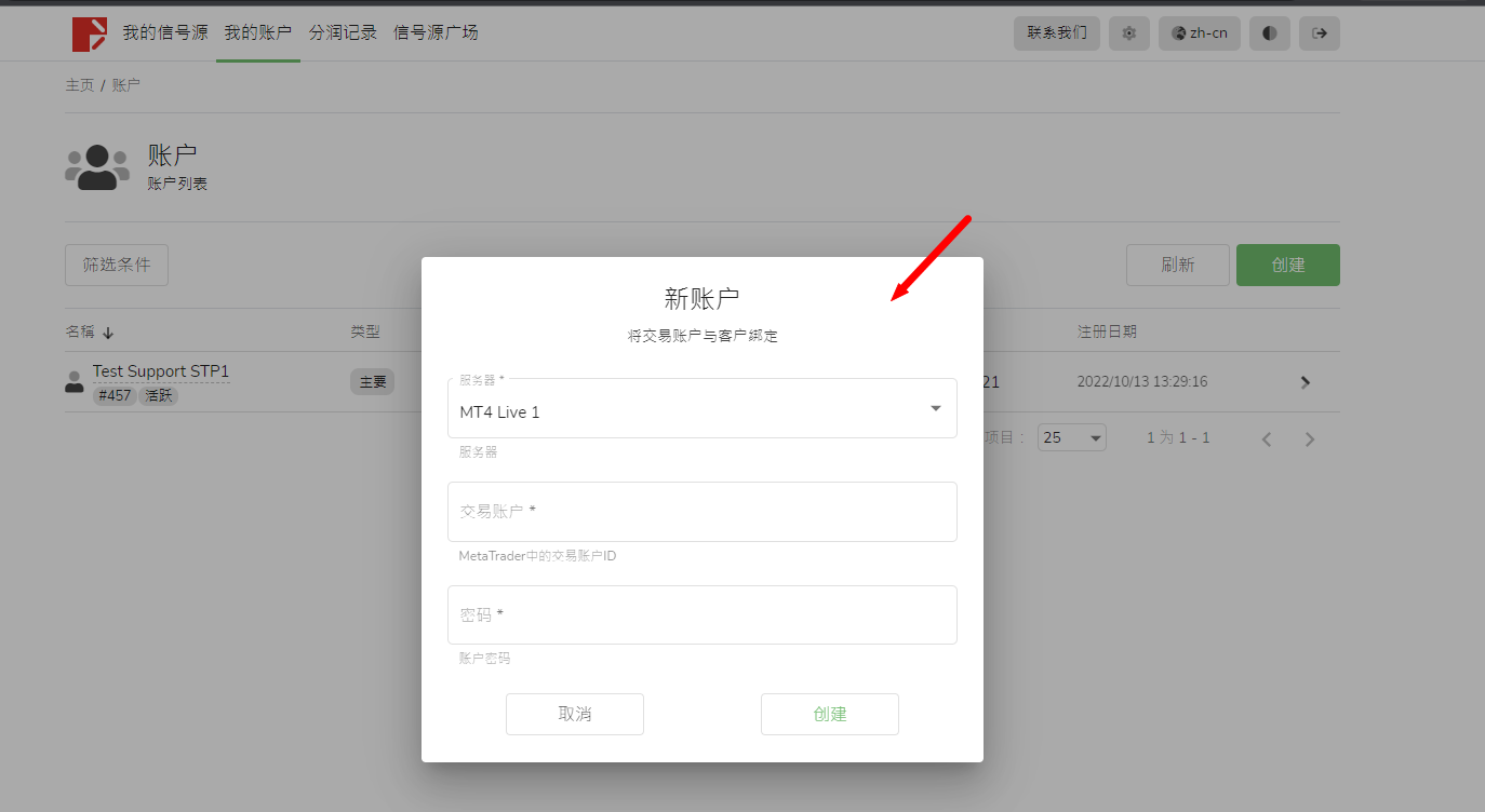 3. 新的交易账户可以用来发布新的信号源,也可以选择成为跟随者,或者用来接收绩效费。