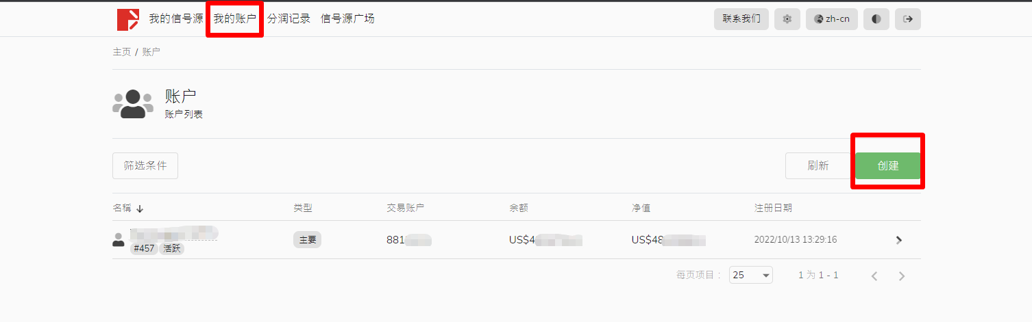 1. 您可以登錄CopyTrading,在「我的賬戶」欄目下,點擊右邊綠色按鈕「創建」。