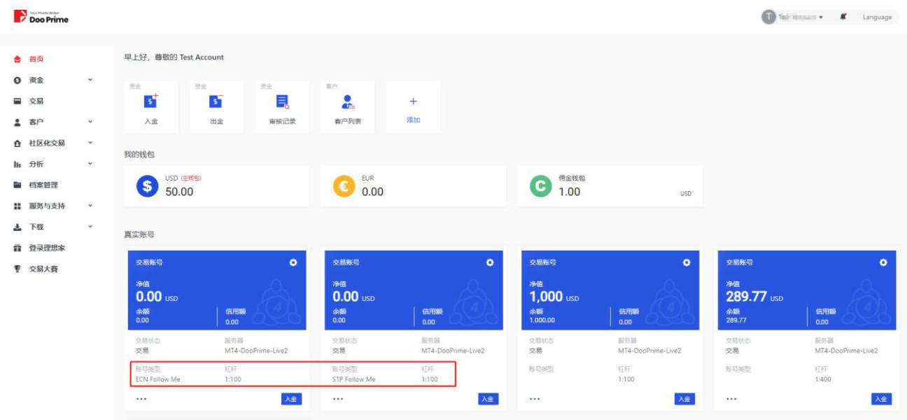 在頁面左側的「活躍帳戶」中可以查看您的D Prime帳號是否已連線成功。