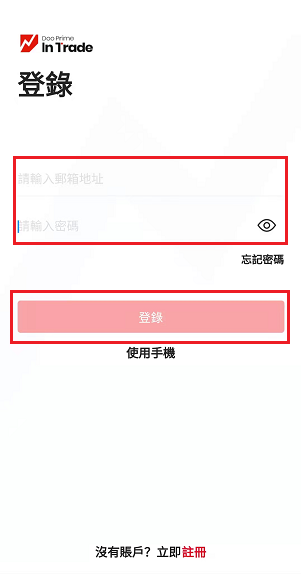 如您沒有D Prime 使用者中心的帳戶,請點選開啟應用程式— D Prime InTrade,於介面底部點選「註冊」。