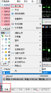 2. 在市場報價的【交易品種】中右鍵選中一個交易產品,然後點擊【新訂單】。