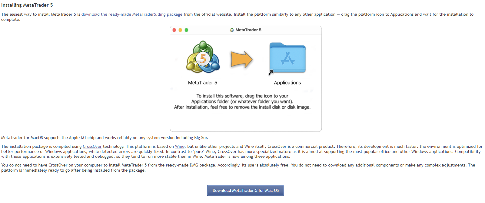 Sau khi chọn [macOS] để tải xuống, nó sẽ chuyển sang trang sau, nhấp vào [Tải xuống MetaTrader 5 cho macOS]