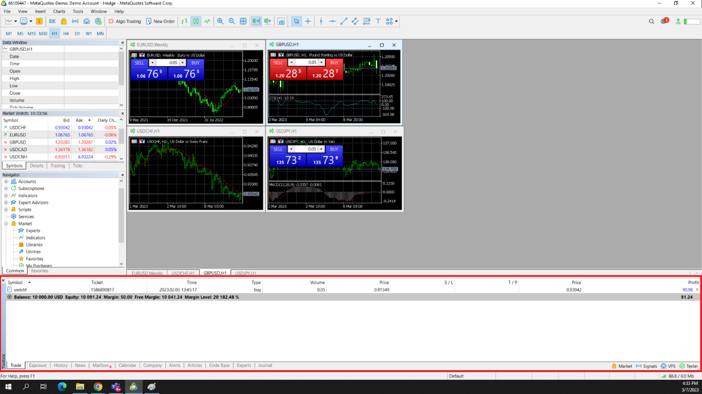Người dùng có thể chuyển đổi giữa các tài khoản giao dịch khác nhau trong [Tài khoản] trong [Điều hướng] và đặt các chỉ báo cũng như giao dịch EA.
